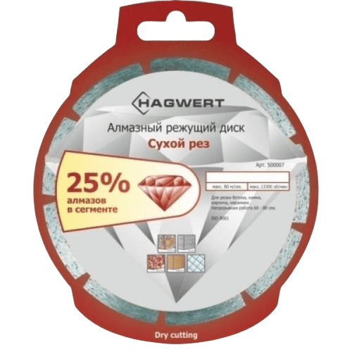 Технические характеристики отрезного алмазного диска по камню HAGWERT 500009