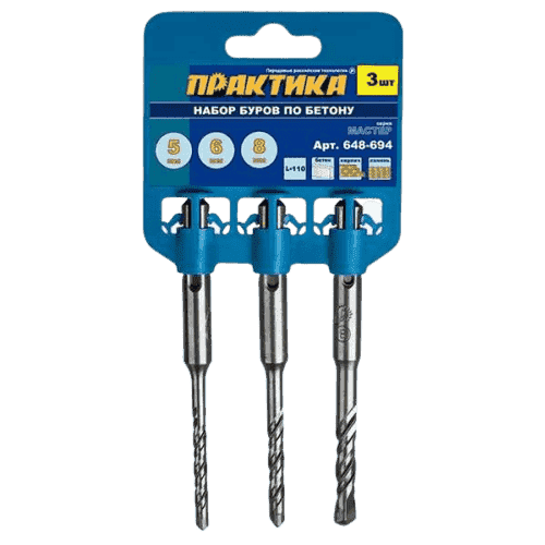 Набор буров ПРАКТИКА Мастер SDS+ 5,6,8 х 110 мм, 3 шт
